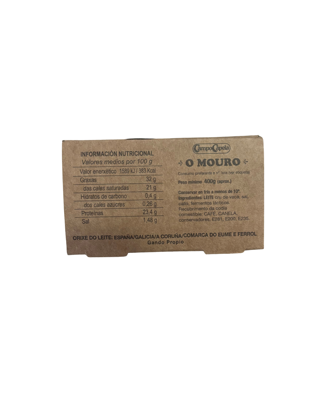 Queso bañado en infusión de canela y café, semicurado, elaborado en Galicia.